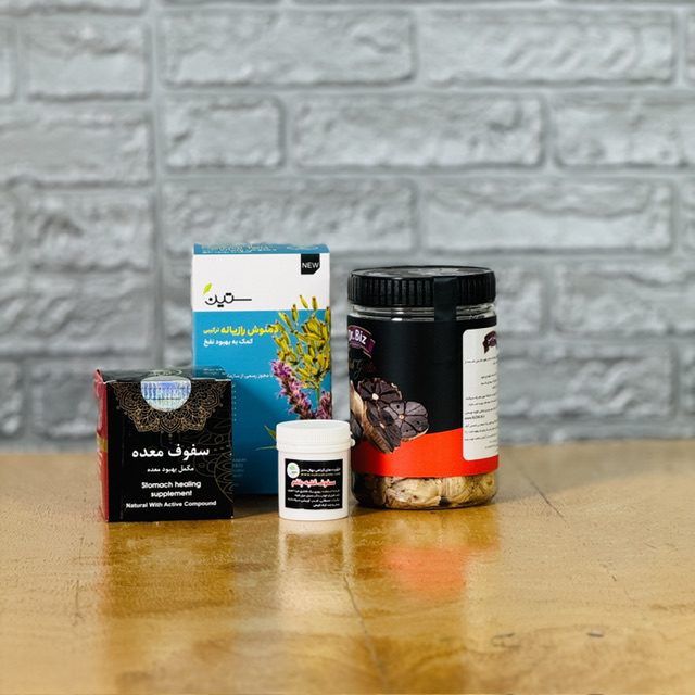 پک ضد نفخ این پک شامل دمنوش ضد نفخ و سیرسیاه و صفوف معده است که کمک میکند مشکلات معده برطرف شود .